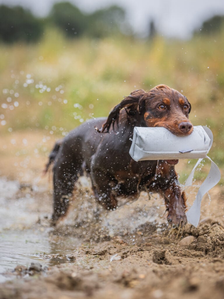 Attention to detail is paramount in order to compete at the highest level, so in this instance, I don’t want it to turn into a hunting exercise where the dog uses her nose to find the dummy. I’m looking for her to go straight to the fall and pick by sight. The difference can be noted.